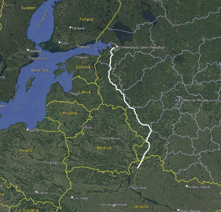 Am incercat sa pun pe harta un posibil traseu pe deasupra Rusiei, care ocoleste asezarile mari, corespunzator cerintei ca zborul sa fie cat mai dificil de detectat.