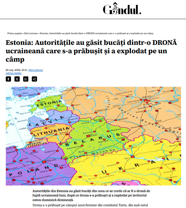 Cumva, presa incearca sa ne convinga si pe noi, sa luam pe nemestecate ca drona aia a fost cumva beata si, dupa ce a zburat bine-mersi vreo 800 de km a luat-o brusc la stanga, trecand de la rusi la estonieni si a cazut cand mai avea de zburat inca vreo 300 de km…