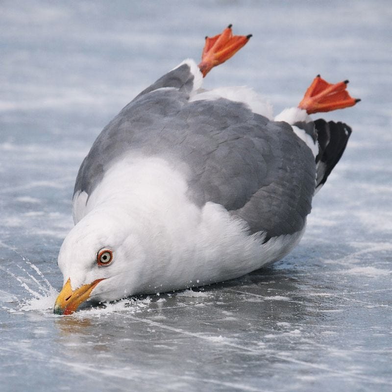 Am vazut un pescarus alunecand pe gheata si cazand in nas.