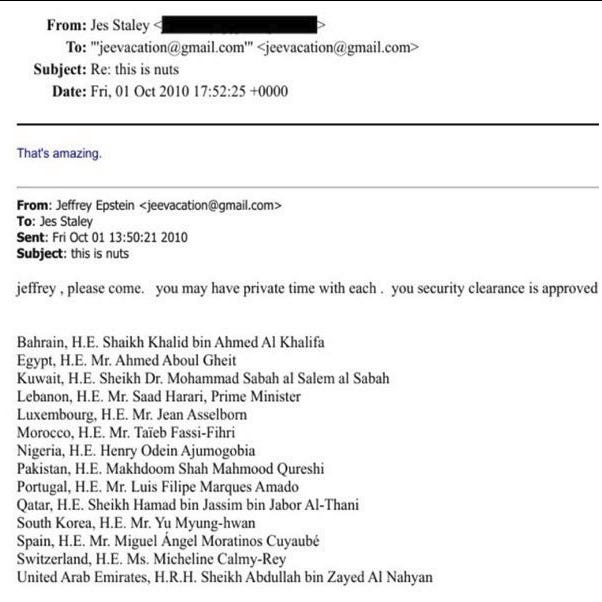 Se spune ca Epstein l-a invitat si pe Berlusconi la una din petrecerile sale dar Berlusconi i-a răspuns ca „Nu, mulțumesc. La mine mâncarea e mai bună, iar vinul e atât de bun încât fetele se întorc de unele singure, fără să fie nevoie să le răpim.”