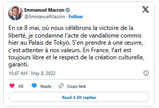 Scandal mare la Elysee, insusi Soarele sarind sa condamne ferm gestul! Vopseaua pe tablou e considerata ca “un atac asupra valorilor noastre”.