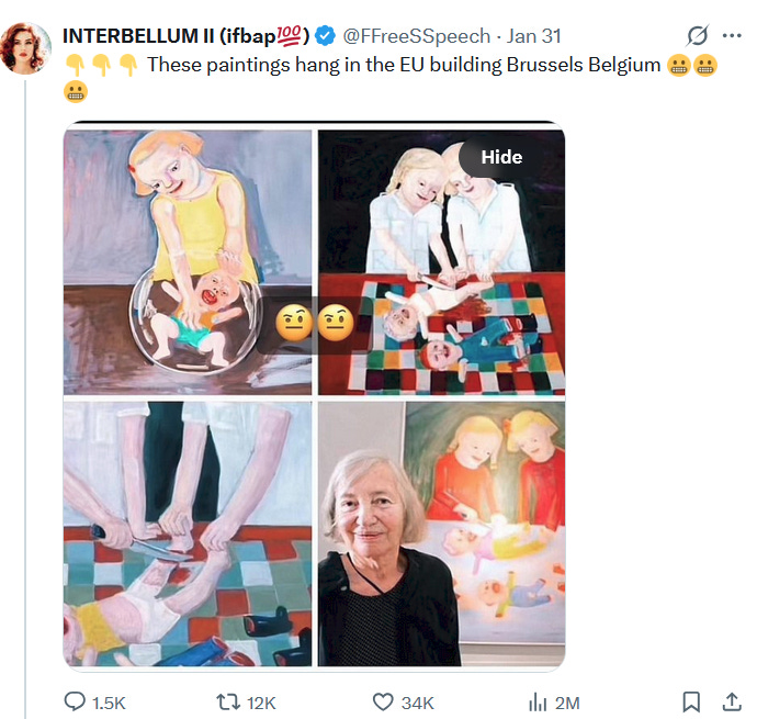 Ce vedem in el este un act sexual cu, evident, un copil care, sa privim atent, are mainile legate la spate. “Artista” e din Elvetia…